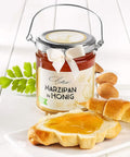 Aus der Spezialitäten Manufaktur Collier in Hamburg: Echtes Lübecker Marzipan trifft auf fein-aromatischen, cremigen Bienenhonig. Ein Genuss nicht nur für Marzipan-Liebhaber. Köstlich auf Brötchen, Toast, Waffeln und Pfannkuchen oder zum Süßen von Obstsalat und Dressings. Ohne Zusatz von künstlichen Farbstoffen. Das Glas mit Henkel kann nach dem Genuss weiter verwendet werden, z.B. als Windlicht.
