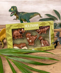 Die grüne Geschenkpackung enthält fünf beliebte Dinofiguren, die kleinen Saurierexperten schon im Kindergartenalter ein Begriff sind: