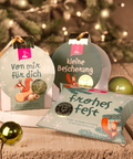 Der Kleine Gruß ist gefüllt mit 4 Royal Nougat Minis à 10 g und überbringt als kleine Aufmerksamkeit eine liebevolle Botschaft in der Weihnachtszeit. Die Faltschachtel besteht aus FSC-zertifiziertem Papier aus nachhaltiger Forstwirtschaft.